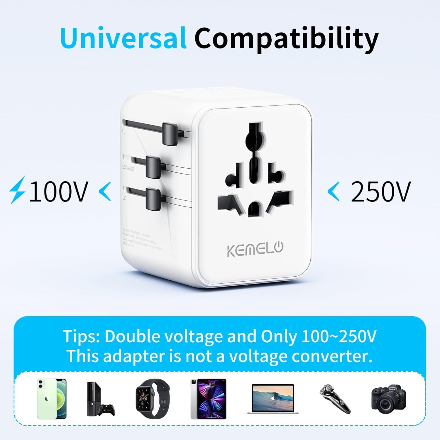 5-in-1 Universal Travel Adapter with USB-A and USB-C Ports